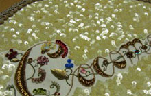 生地を木枠に張り、特殊な細い針(アリ)を使ってチェーンステッチを作りながら、ビーズやスパンコールなどを刺していきます。 もちろん、美しい糸刺繍もできます。